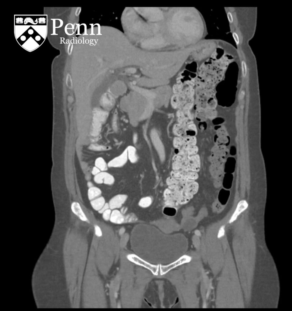 A 22-year-old man with subacute abdominal pain and diarrhea.