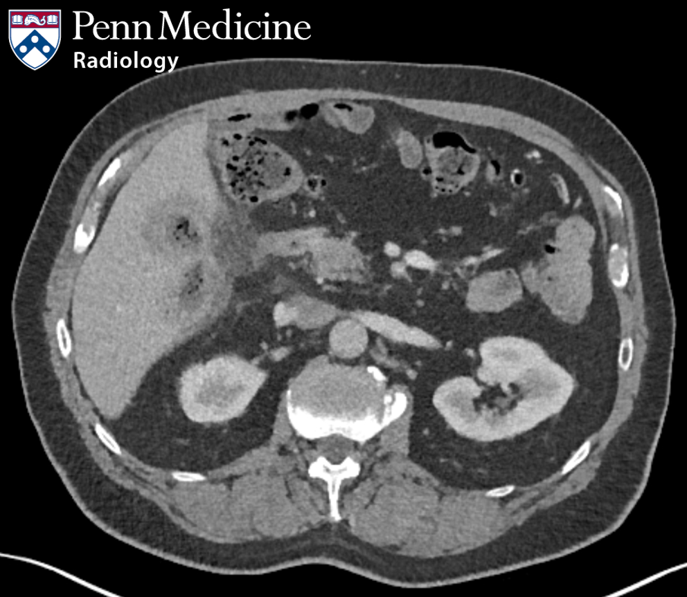 A 76-year-old man presented with intermittent right upper quadrant pain he'd been experiencing for several weeks.