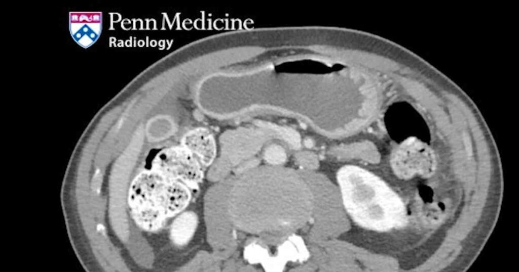 An 82-year-old woman presented to the hospital at night with a two-day history of worsening epigastric pain that radiated to the right upper and lo…