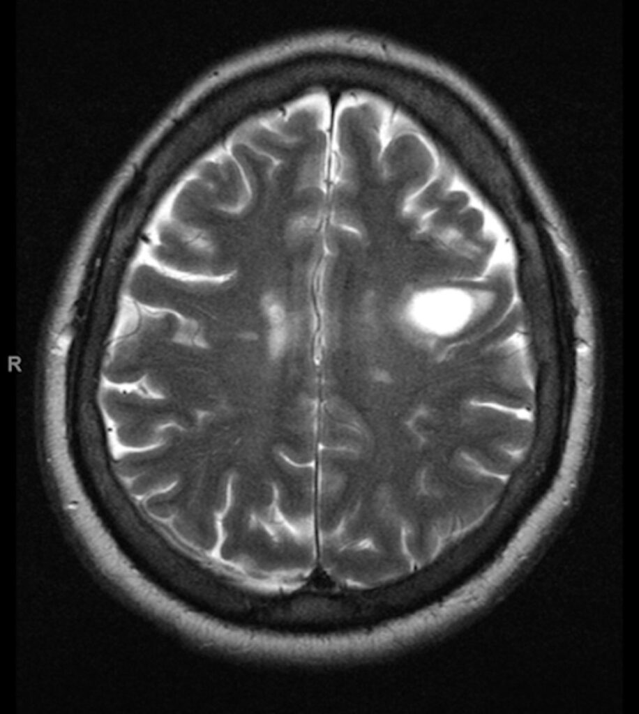 A 46-year-old previously healthy man presented to the emergency department with the chief complaint of slowly worsening slurred speech for 10 days and…