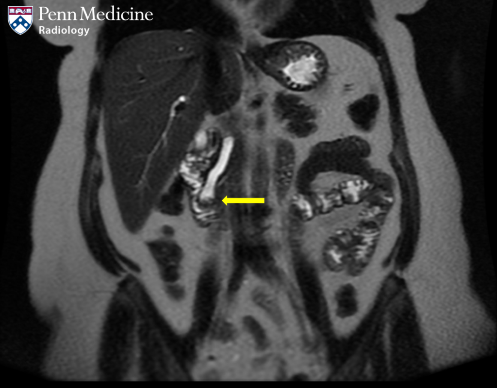 A 35-year-old woman with congenital heart disease presented to the ED with epigastric pain.