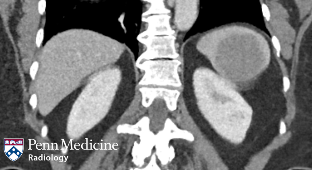 A 32-year-old woman presented with a palpable left abdominal mass.