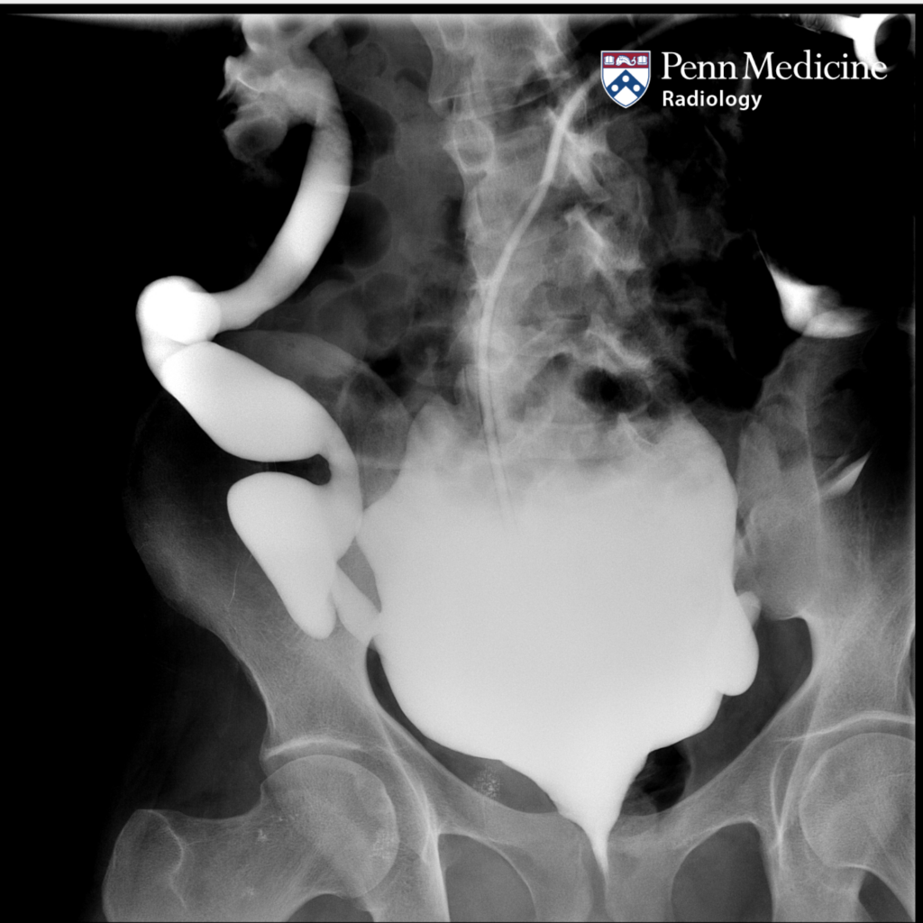 A 68-year-old man with urinary retention and a history of prostate cancer.