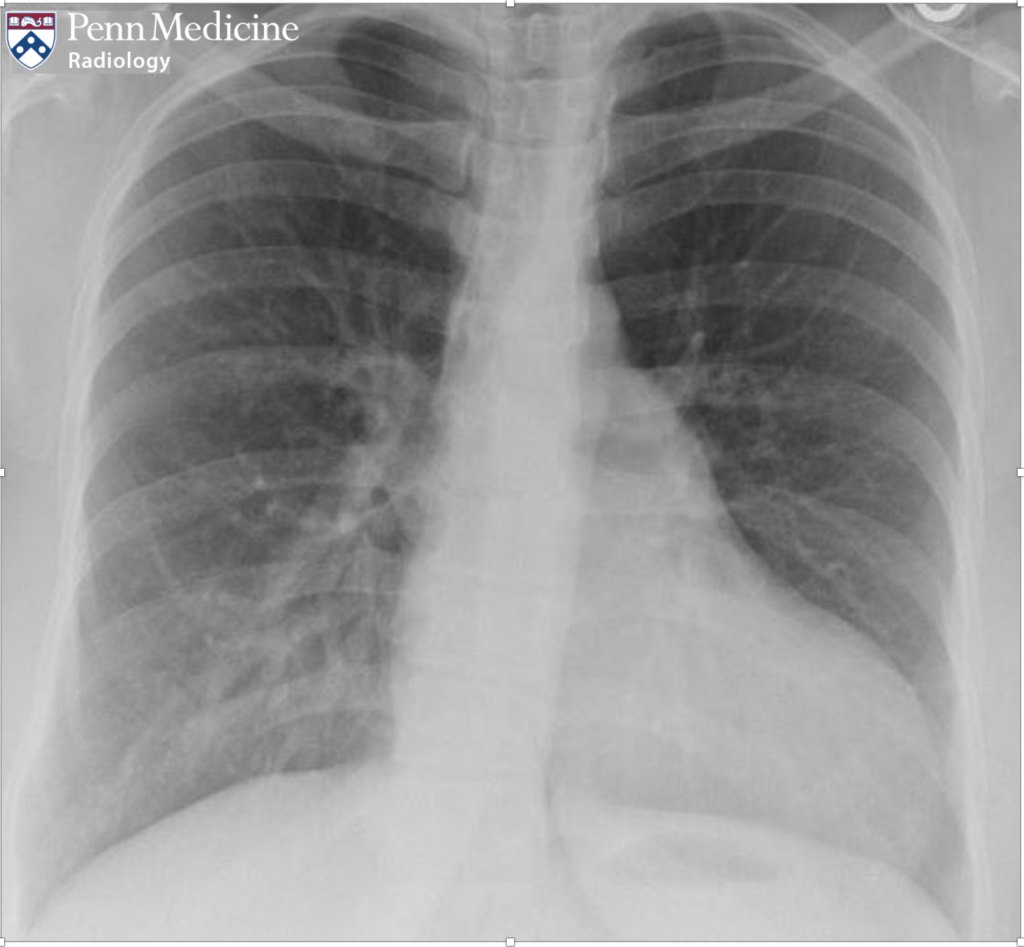 A 26-year-old woman with chest tightness, dyspnea, and jugular venous distension.