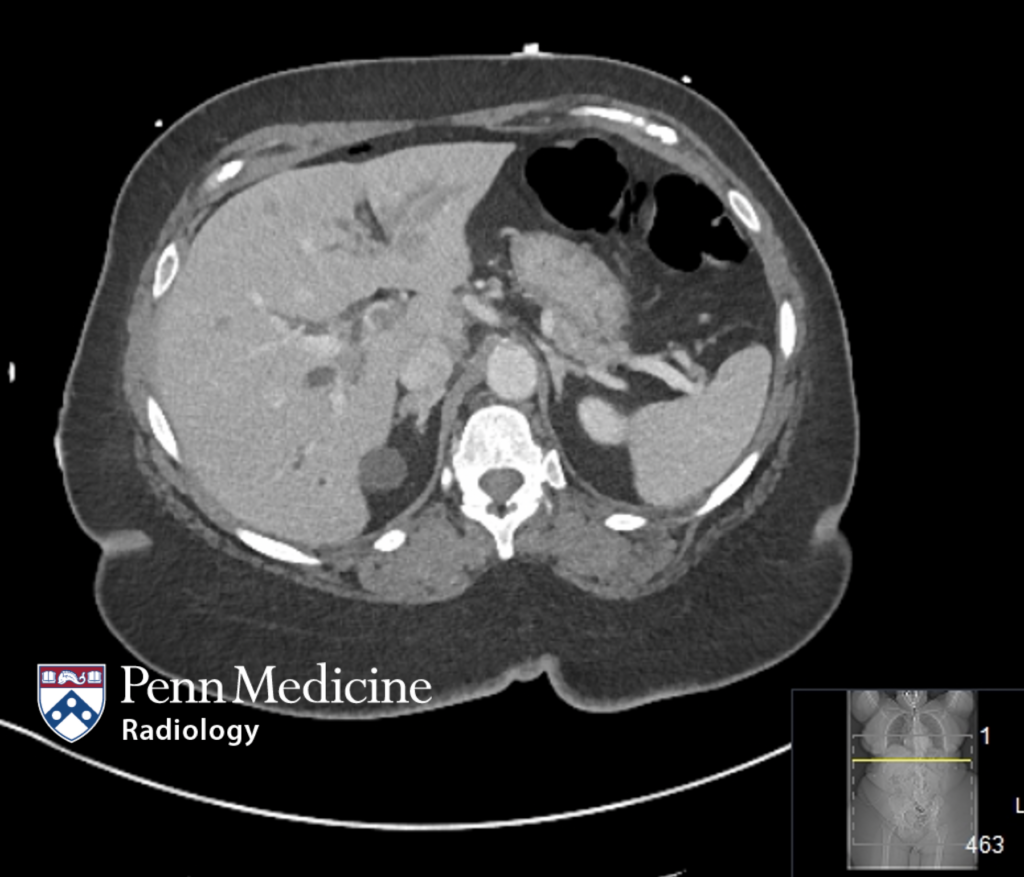 A 38-year-old woman with worsening fatigue and generalized abdominal pain.