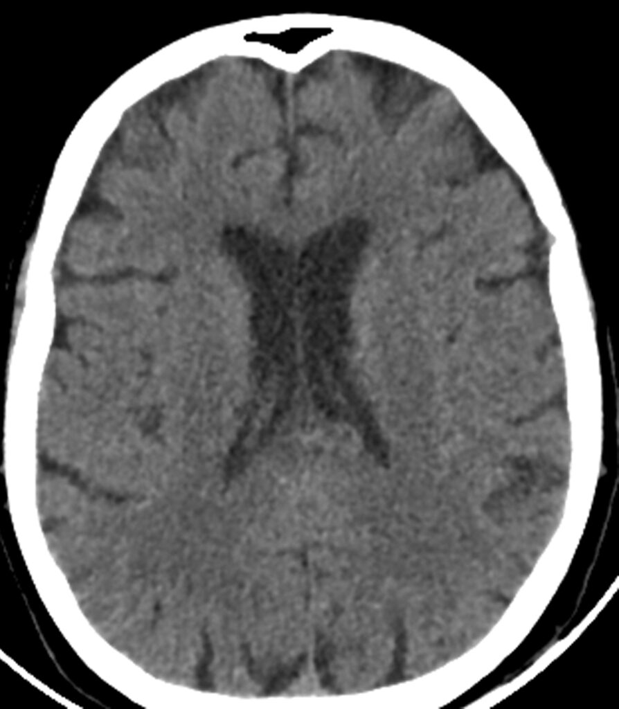 An 82-year-old woman after a syncope episode in which she fell backward and hit her head.