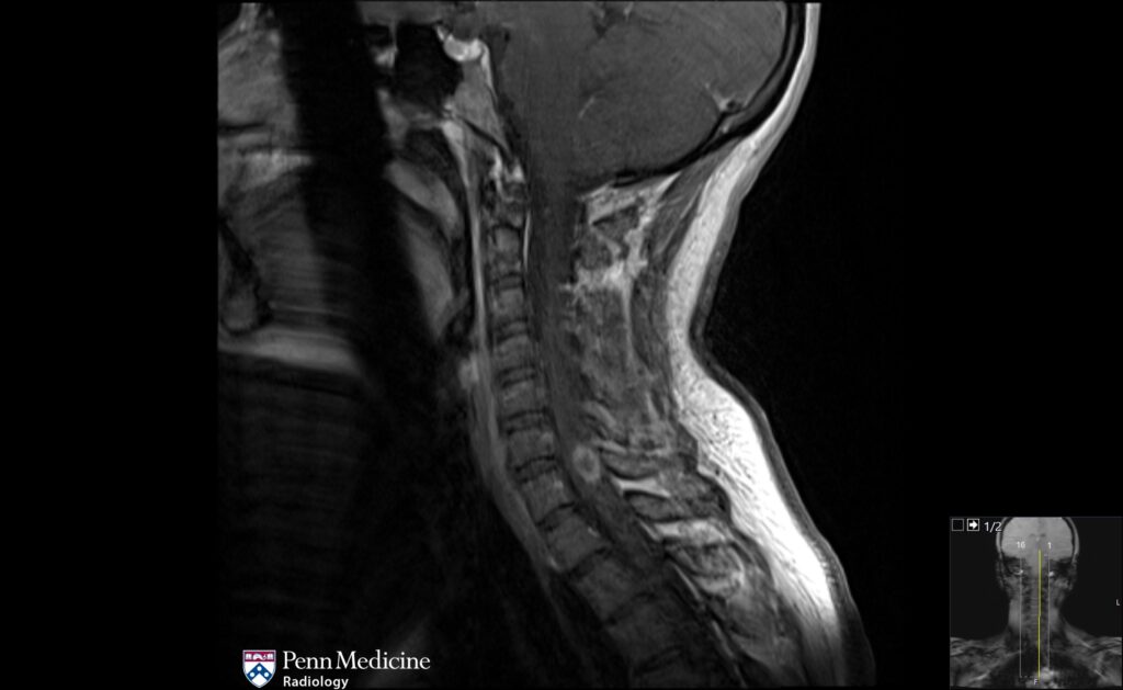 A 30-year-old woman with several days of sudden-onset numbness to her torso.