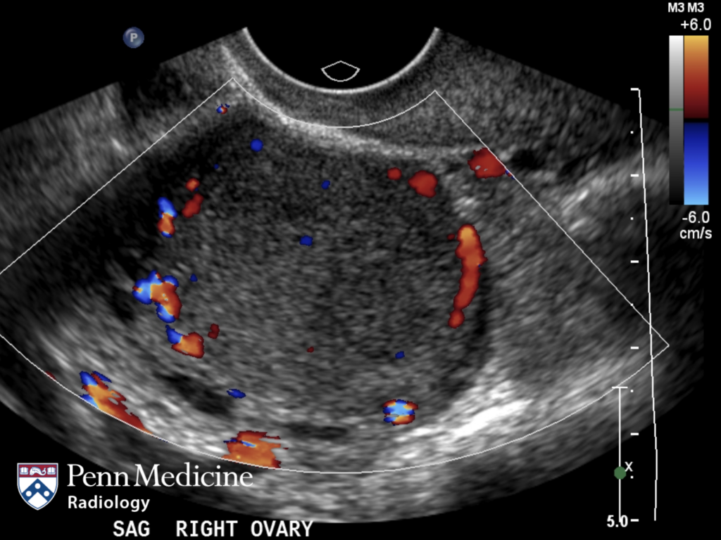 A 20-year-old woman with abnormal uterine bleeding and worsening diffuse lower abdominal pain that started three days ago.