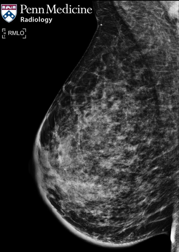 A 35-year-old woman presented with enlargement, tenderness, and erythema of the right breast, more pronounced in the upper outer quadrant.