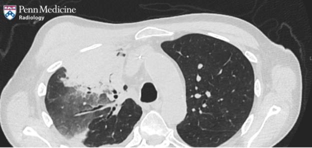 An immunocompromised 70-year-old man with recurrent acute myeloid leukemia (AML), recent reinduction, presented with fever and progressive hypoxia despite empiric antibiotic therapy.